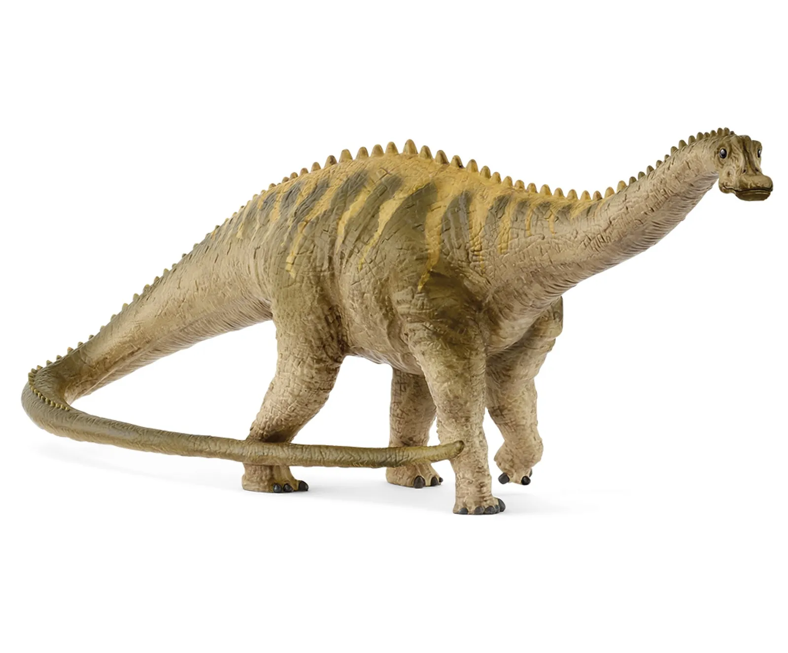 The Diplodocus was a massive, long-necked herbivorous dinosaur that lived during the Late Jurassic period, around 154 to 152 million years ago. Characterized by its long, whip-like tail and relatively short head, it could grow up to 26 metres in length. Despite its enormous size, the Diplodocus had a relatively lightweight body, supported by four sturdy legs. It likely fed on ferns and other plants found in the lush, prehistoric landscapes, using its long neck to reach high vegetation or graze on lower plants. Its distinctive appearance and peaceful, plant-eating habits make it one of the most recognisable dinosaurs.