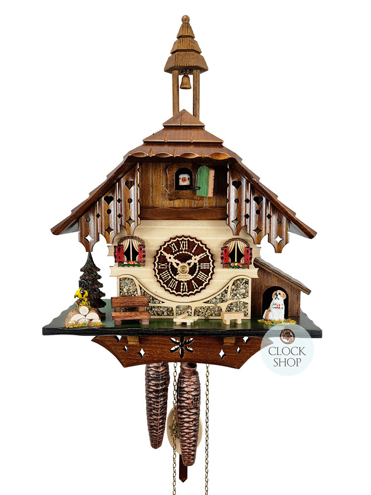 Dog & Bell Tower 1 Day Mechanical Chalet Cuckoo Clock 24cm By TRENKLE