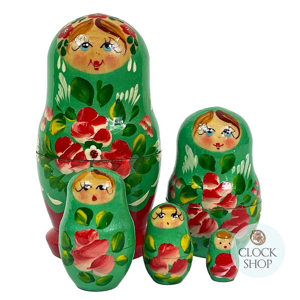 Floral Russian Dolls- Green and Red 10cm (Set Of 5)