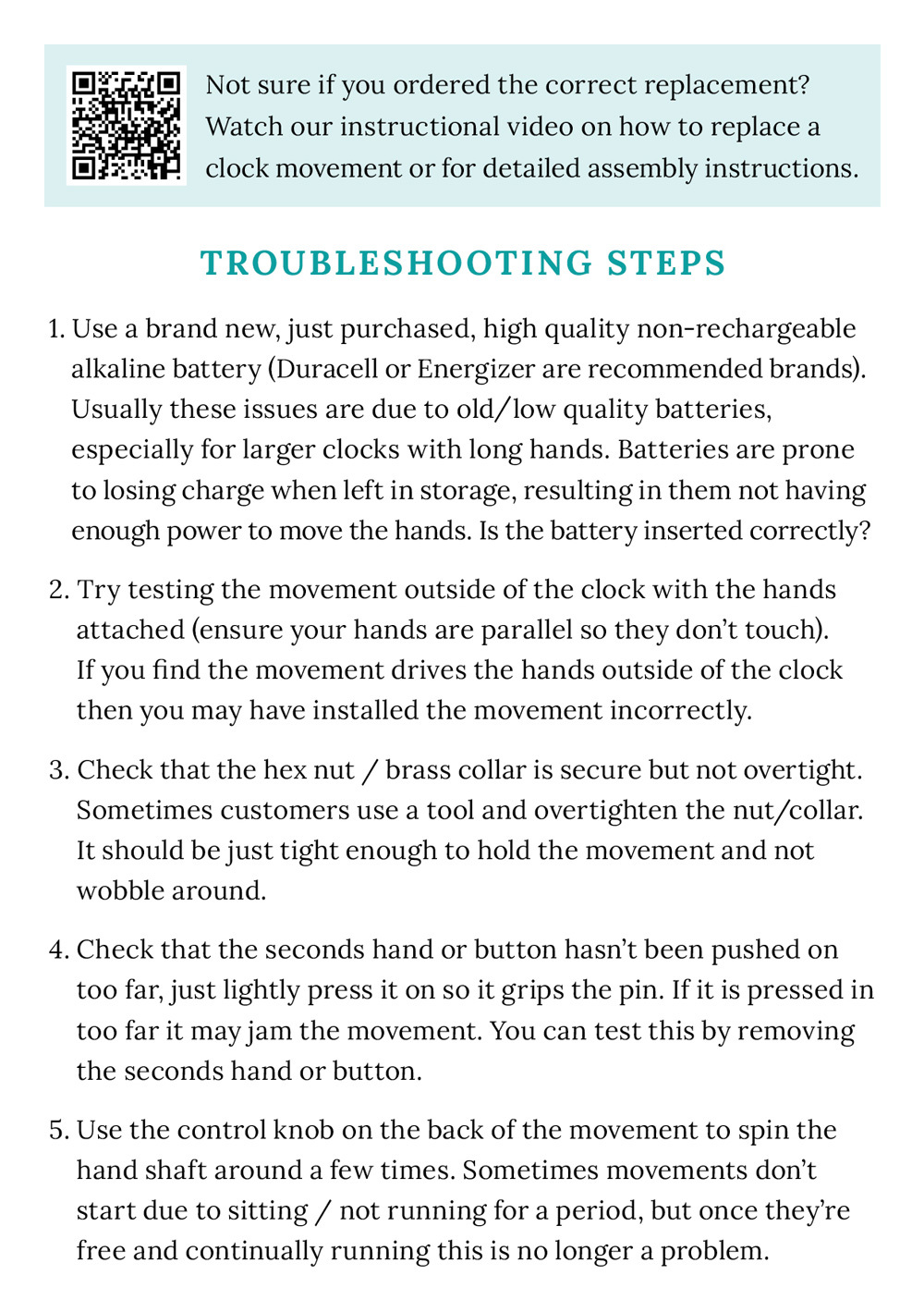 - If your minute hand is over 160mm in length then we strongly recommend that you use a high torque movement