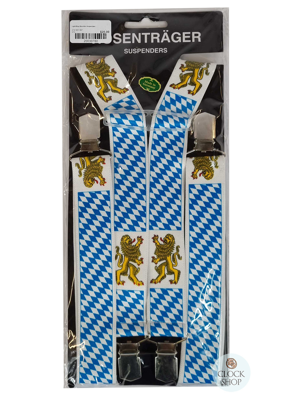 Suspenders, also known as braces, are elastic or fabric straps worn over the shoulders, designed to hold up trousers or skirts. In Germany, suspenders are commonly associated with traditional Bavarian clothing, such as lederhosen for men and dirndls for women. These garments are iconic symbols of German culture and are often worn during festivals like Oktoberfest or other festive occasions, whilst contributing to the visual appeal of the traditional German outfit. Suspenders are often crafted from high-quality materials and feature decorative and colourful elements such as traditional embroidery, intricate patterns, flowers or metal buckles. German suspenders add an authentic and nostalgic element to the outfit, while also representing a connection to German culture and traditions.