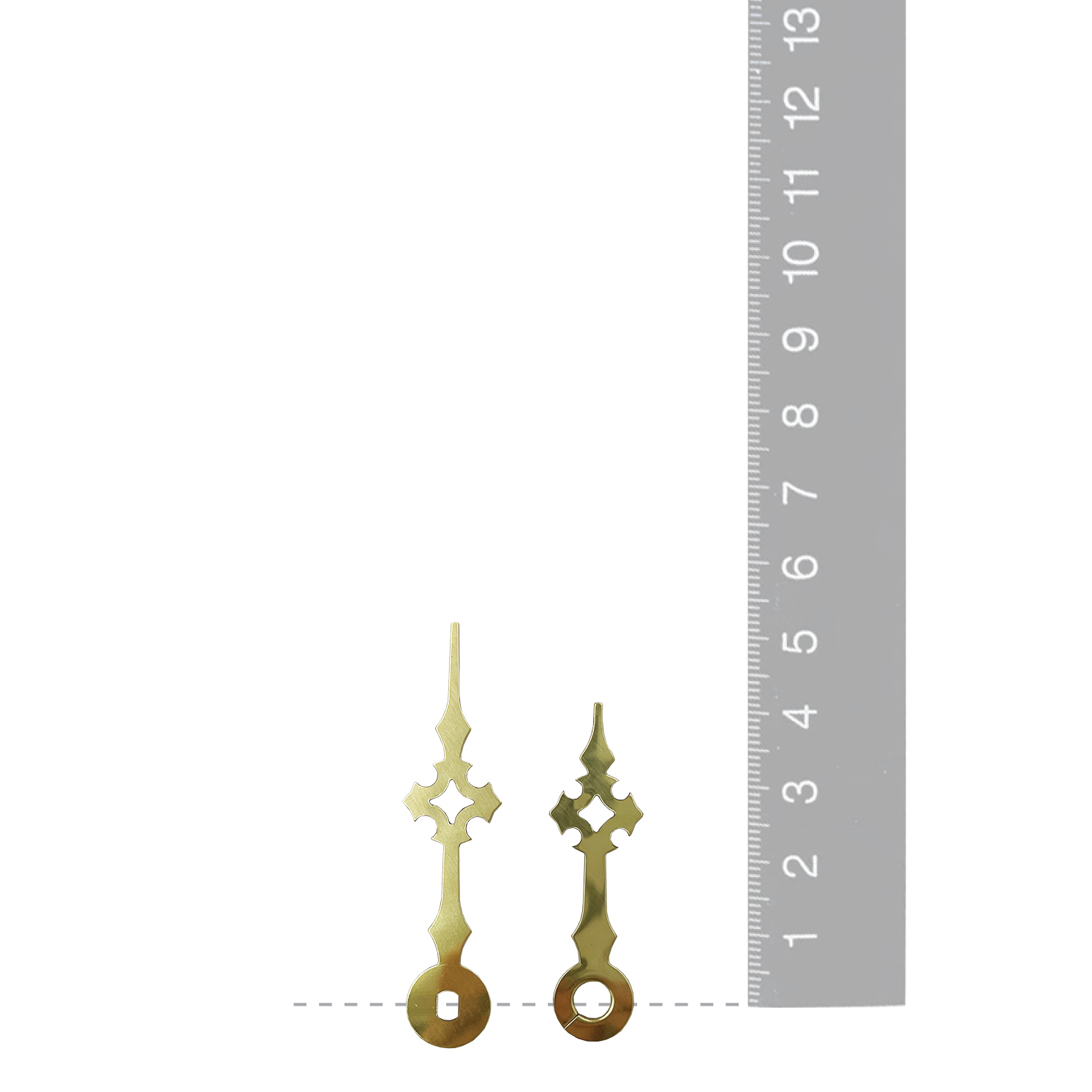 These hands feature a gothic design, with a minute hand length of 52mm and an hour hand length of 40mm. The hand length is measured from the centre hole to the very end of the hand, not from end to end.