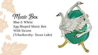 Green & White Egg Shaped Music Box With Swans (Tchaikovsky- Swan Lake)