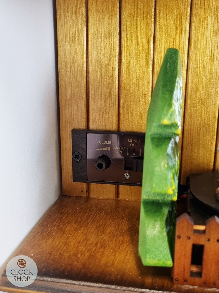 This fascinating scene also includes a wooden clock dial in the centre of the chalet, and a large amount of hand painted details including window shutters and flowers in the windowsills. Rounding out this unique clock is a timber pendulum that hangs below the clock dial itself, alongside the decorative ornamental weights. The in-built cuckoo of this beautiful clock calls the time each hour, with an automatic night-time shut-off that is controlled by a light sensor. When the room is dark enough, the cuckoo will no longer sound allowing you a sound sleep, before recommencing as the room lights up again the next morning. This cuckoo clock comes with an option of 12 different melodies (music can also be turned off) that rotate each hour including: