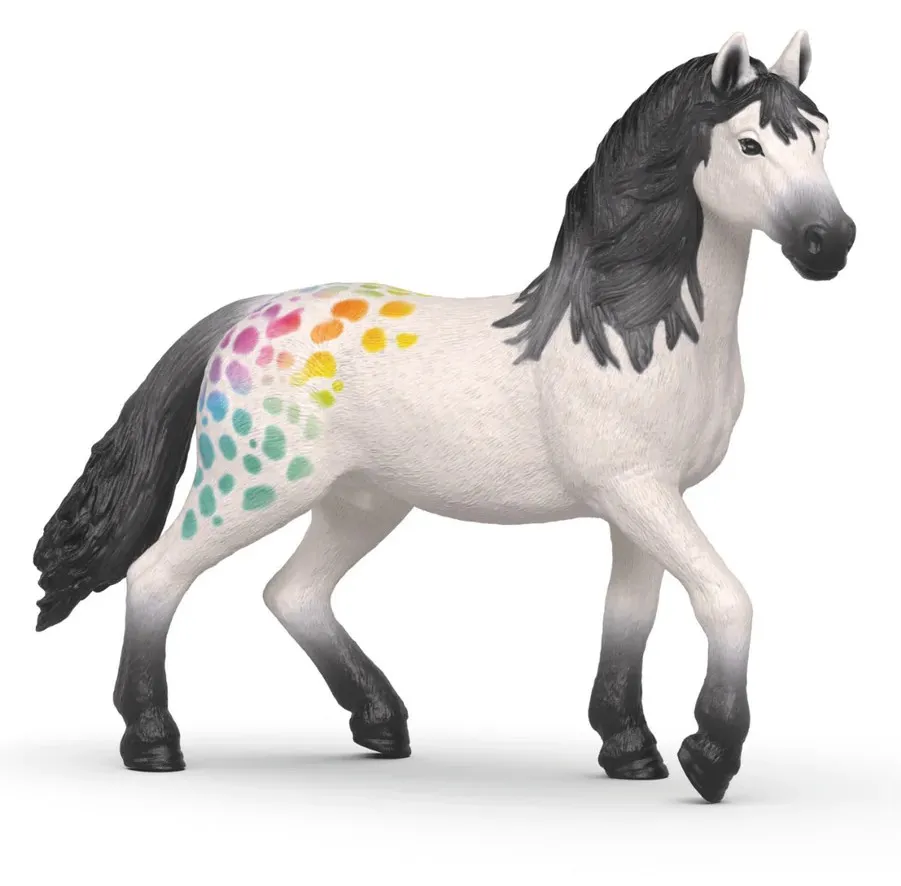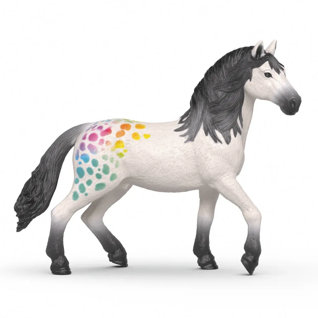 The iconic Schleich horse is now available in a special 90th anniversary edition. This popular figurine is uniquely designed with white fur, a vibrant rainbow pattern. This exclusive, limited-edition collectable is perfect for both collectors and Schleich enthusiasts.
