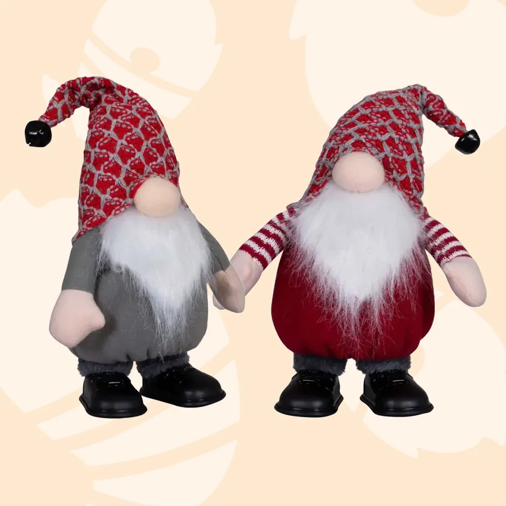 With a built-in dancing mechanism, this little guy brings a touch of fun wherever he goes. Perfect for shelves, mantels, or anywhere that needs a little cheer, this dancing gnome is sure to bring a smile to everyone's face! Available in red or grey clothing options (each sold seperately), these delightful companions are sure to dance their way through your festive season, bringing joy wherever they go.