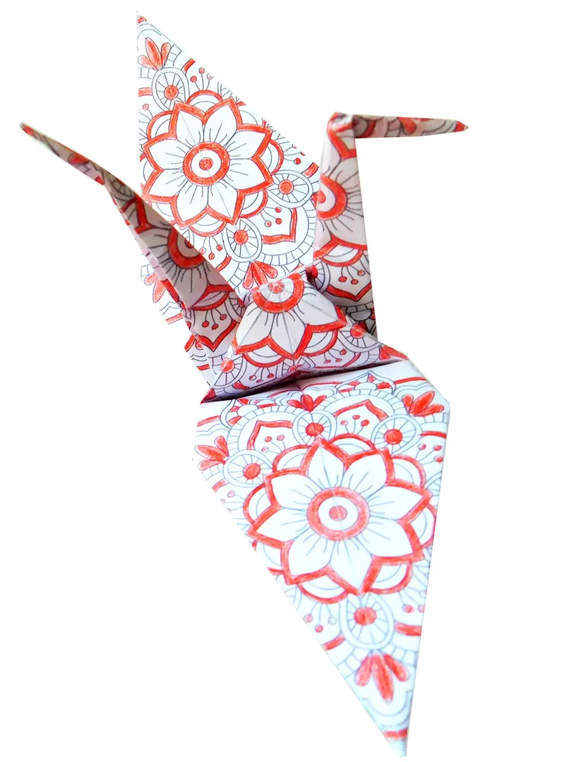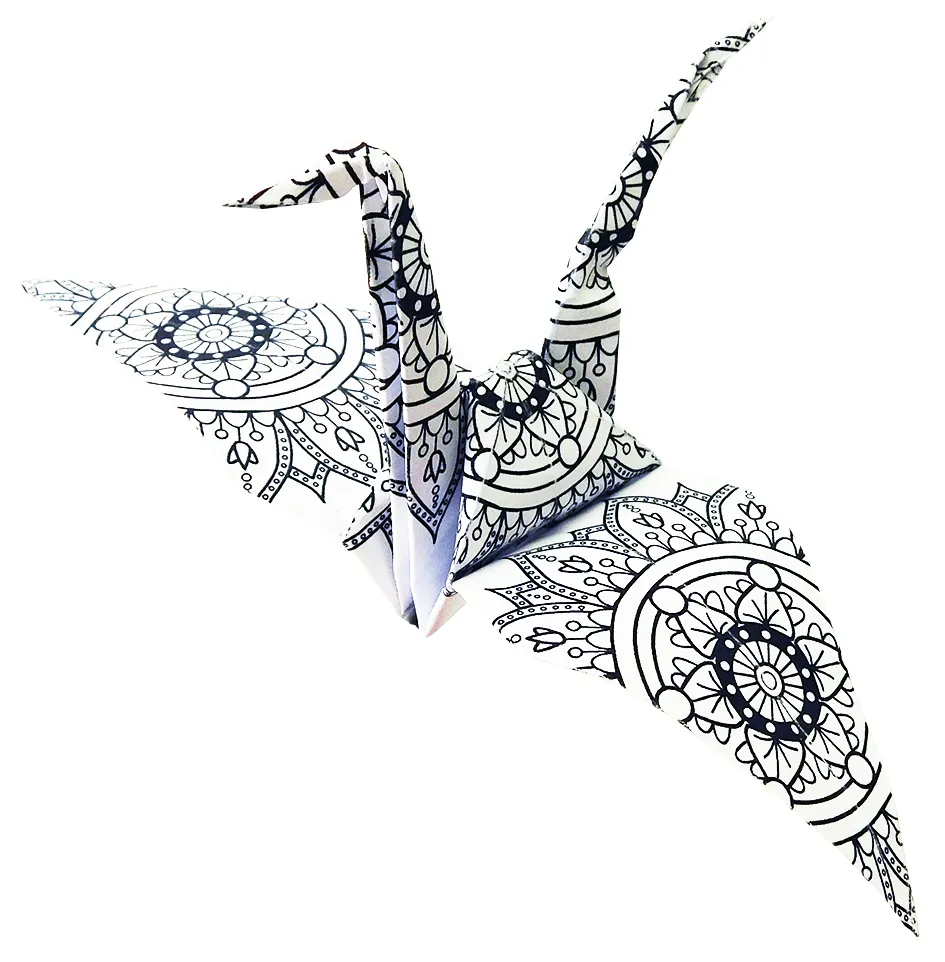 Mandala Colouring Origami- Crane