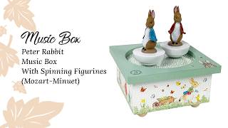 This Peter Rabbit themed music box features two figurines who twirl on the magnetic 'dance floor' when the key is turned and the music is activated. Introduce your little ones to classical music from a young age with this music box that plays Minuet by Wolfgang Amadeus Mozart.