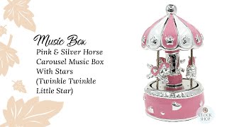 Pink & Silver Horse Carousel Music Box With Stars (Twinkle Twinkle Little Star)