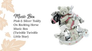 Pink & Silver Teddy On Rocking Horse Music Box (Twinkle Twinkle Little Star)