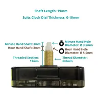 Press Fit Sweep Clock Movement | 19mm Shaft | Fits 3.5mm & 5.5mm Hand Holes