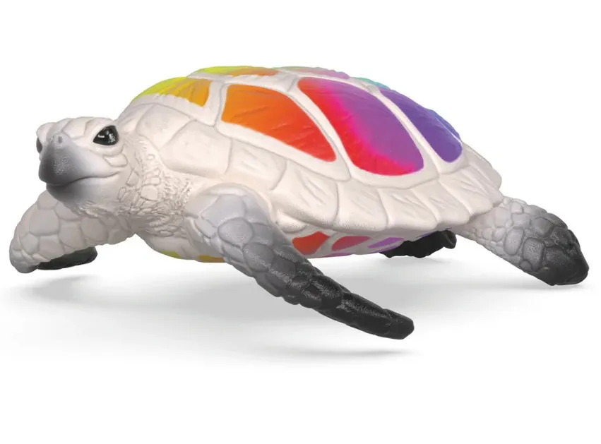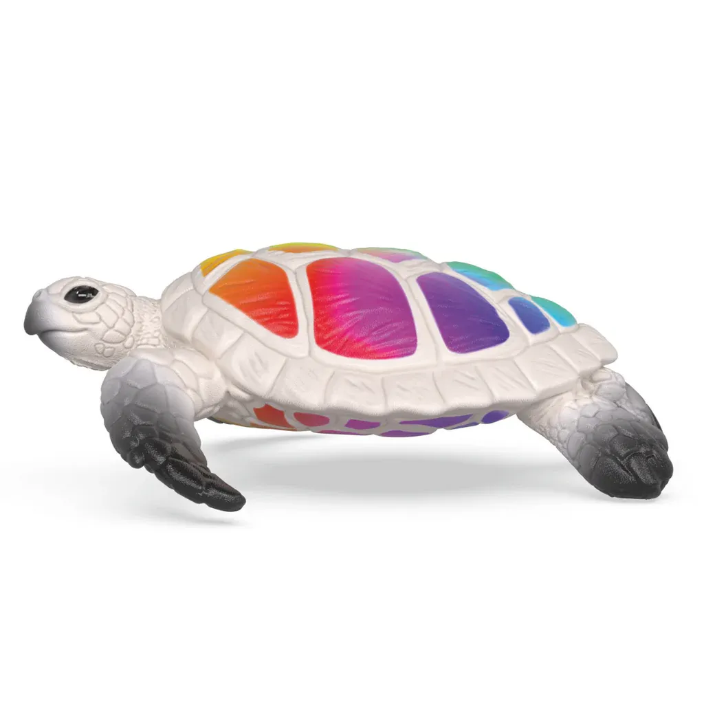 The iconic Schleich turtle is now available in a special 90th anniversary edition. This popular figurine is uniquely designed with a white shell, a vibrant rainbow pattern. This exclusive, limited-edition collectable is perfect for both collectors and Schleich enthusiasts.