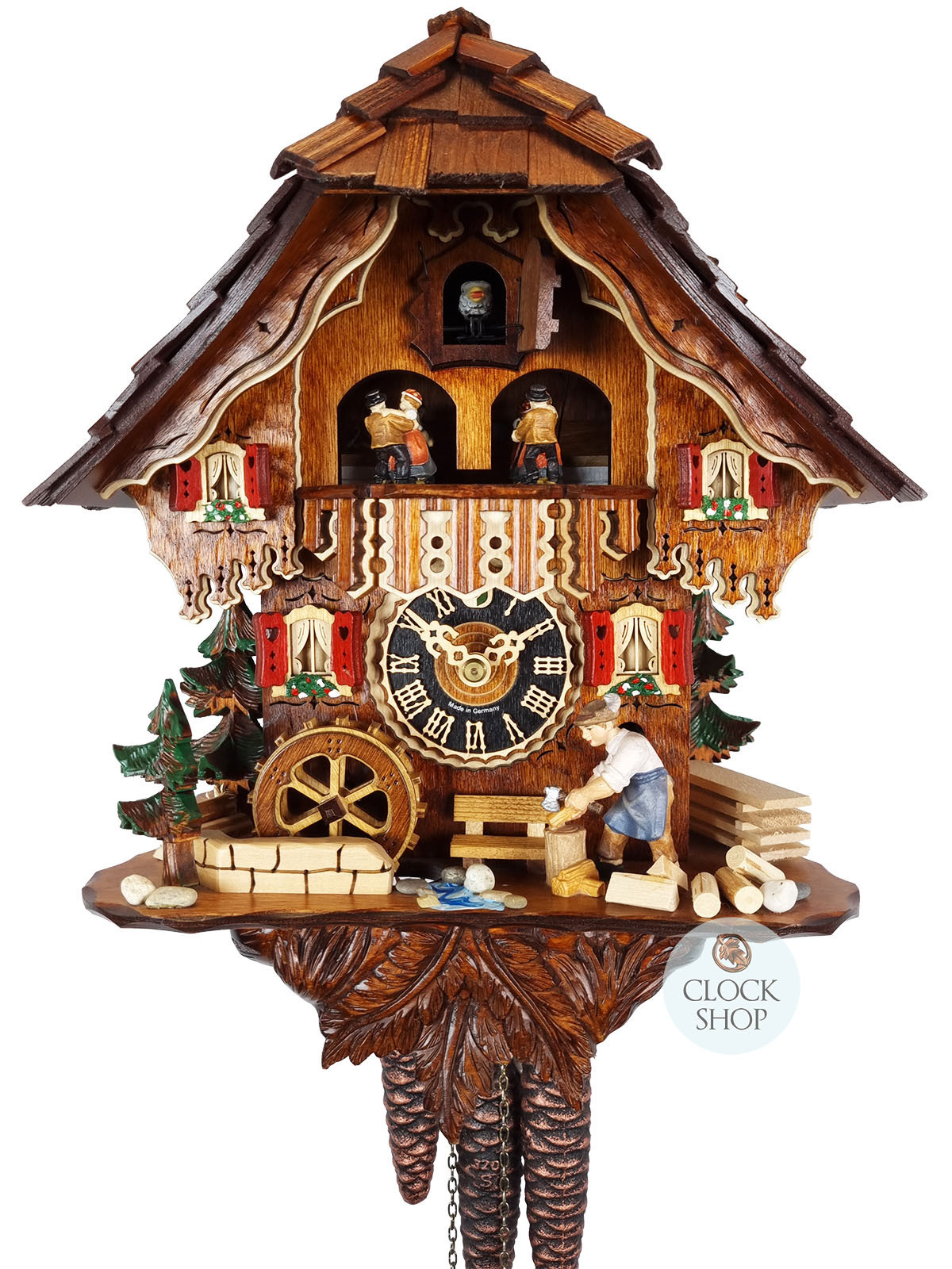 Wood Chopper & Water Wheel 1 Day Mechanical Chalet Cuckoo Clock With Dancers 35cm By HÖNES