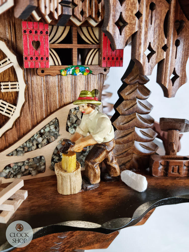 Wood Chopper & Waterwheel Battery Chalet Cuckoo Clock With Dancers 37cm By ENGSTLER