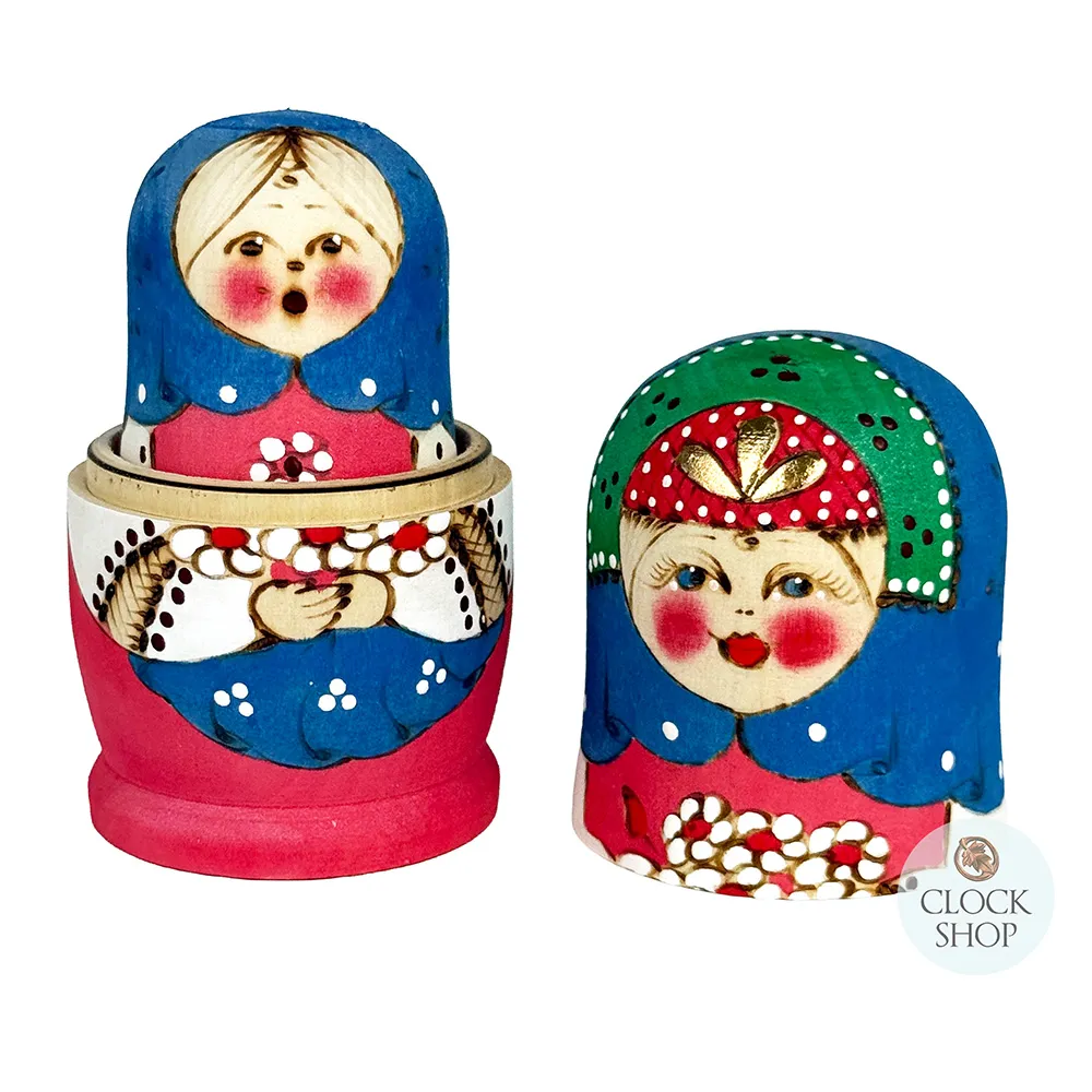 Woodburn Russian Dolls- Blue Scaft Floral 11cm (Set Of 5)