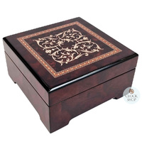 Wooden Musical Jewellery Box With Arabesque Inlay- Small (Brahms- Waltz)